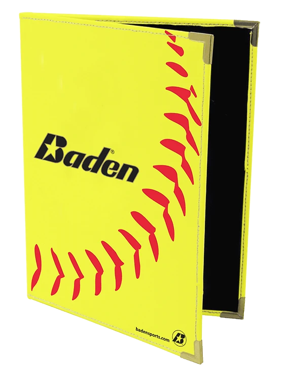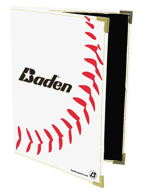 Represent your favorite sport with a baseball or softball notebook to take on or off the field. The notebook comes with paper plus a spot for a pen and business cards.