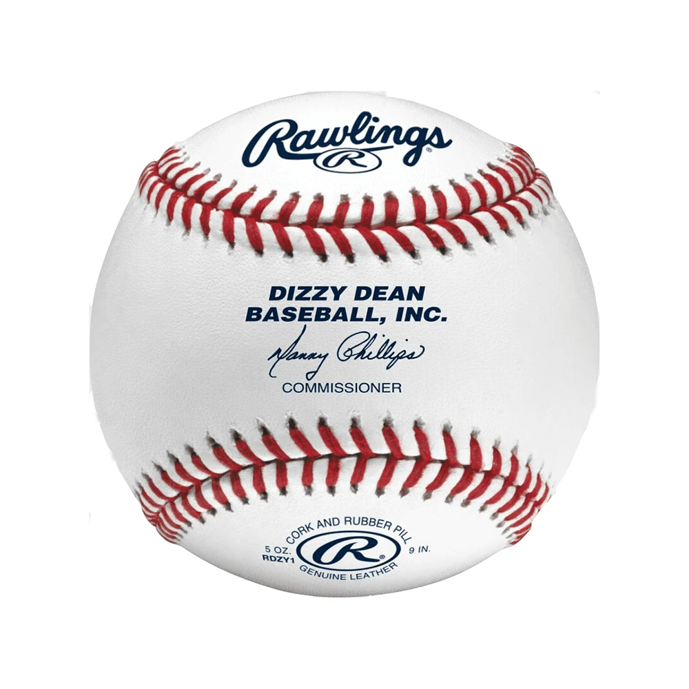 This baseball has Rawlings superstitch raised seams with full grain leather cover and composite cork and rubber center which makes it perfect for Dizzy Dean League Baseball.